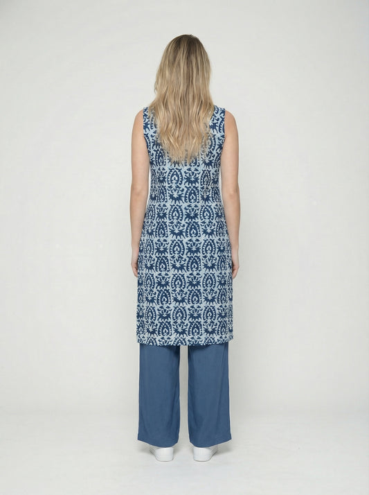 Women’s Batik Kurti – Indigo Tile Sleeveless