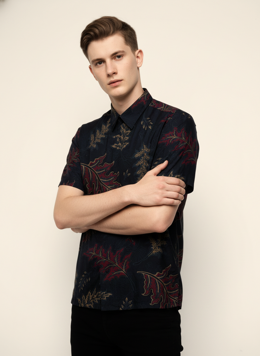 Men's Batik Shirt – Nightfall Leaf | Short Sleeves