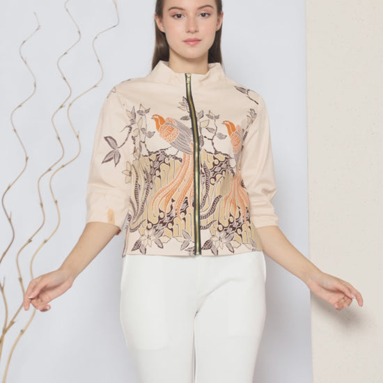 Introducing the Golden Phoenix Bomber Jacket, where Malaysian batik craftsmanship meets modern design. Adorned with exquisite phoenix and floral motifs on a luxurious cream-gold base, this bomber jacket is perfect for both casual wear and elegant occasions. Lightweight and comfortable, it’s an effortless way to showcase cultural heritage with a contemporary twist.