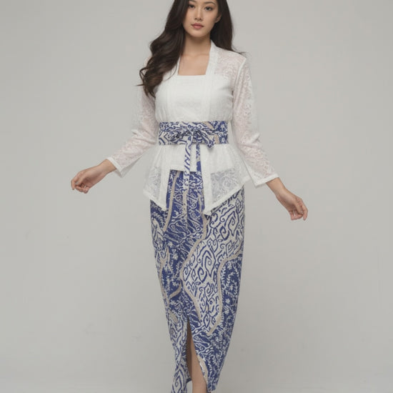 - 3-piece set: Kebaya-inspired top, batik pario wrap skirt, and matching obi belt