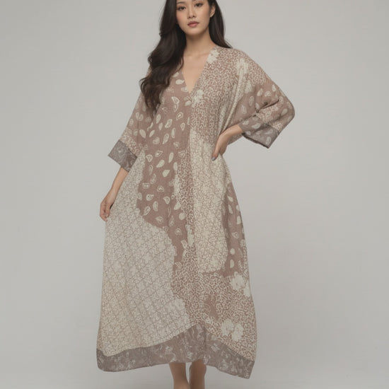 Women's Batik Kebaya Luna Kaftan Tile - Mocca Leaf